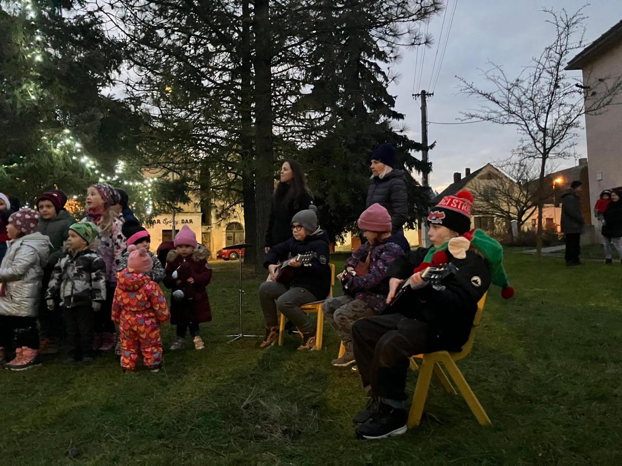 V pondělí 2.12. zazpívaly děti MŠ a ZŠ vánoční koledy na ,,Rozsvícení vánočního stromu". Akce byla doplněna o vánoční jarmark.