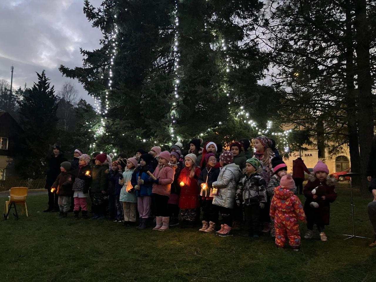 V pondělí 2.12. zazpívaly děti MŠ a ZŠ vánoční koledy na ,,Rozsvícení vánočního stromu". Akce byla doplněna o vánoční jarmark.